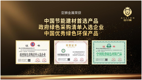 亚狮金属陆续荣获“政府绿色采购清单入选企业”、“中国节能建材首选产品”、“中国优秀绿色环保产品”等荣誉。绿色生活、环保生态,需要社会各界共同创建。亚狮通过提供绿色环保的铝制品产品,为“碳达峰、碳中和”目标贡献力量。