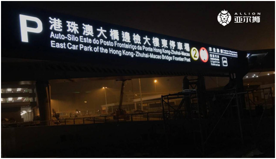 2018年10月23日港珠澳大桥正式通车运营,这座大桥是“一国两制”伟大实践下新的里程碑,更是中国力量、中国精神的生动诠释,是推动粤港澳大湾区发展的国家工程。港珠澳大桥停车场灯箱指示牌选择的是“亚尔狮”品牌,认为亚尔狮铝制品硬度、外观和各项机械性能、各种技术指标,均超过国外优质铝材的标准。