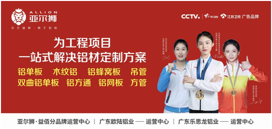 喜报!热烈庆祝亚尔狮铝制品品牌成功上榜江苏卫视电视频道!亚尔狮携两位世界冠军品牌形象大使——羽毛球世界冠军孙瑜、体操世界冠军何宁重磅出击江苏卫视,这是继央视、广东卫视展播又一次大规模的品牌曝光!