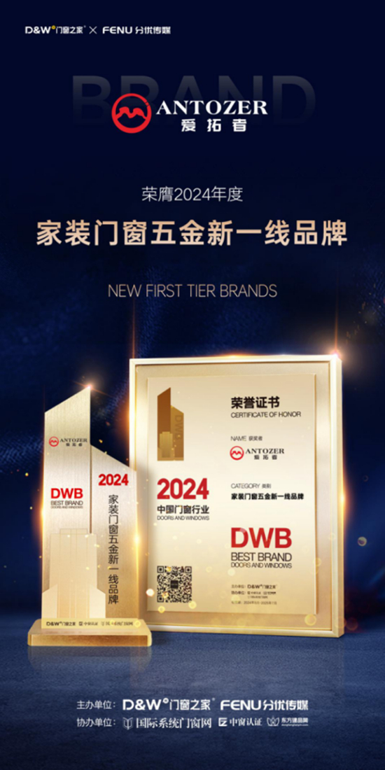 此次荣膺“中国家装门窗五金新一线品牌”,全面彰显了业内对爱拓者的高度认可。未来,爱拓者将继续以市场需求为核心,持续为客户创造价值,以创新驱动发展,以品质赢得市场,以服务赢得口碑,提供优质的门窗五金整体解决方案。爱拓者期待与更多门窗合作伙伴并肩携手,共同“向新而生”,赋能门窗行业提质增效。