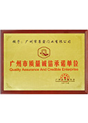 诚信AAA企业、广东省门业协会副会长单位、广州市质量诚信承诺单位等荣誉,产品被评为“中国著名品牌”、“全国门业行业十佳名优品牌”、“广东门业优秀品牌”等荣誉称号; 通过了国家质量检测机构权威检测(水密性5级/气密性8级/抗风压9级).
