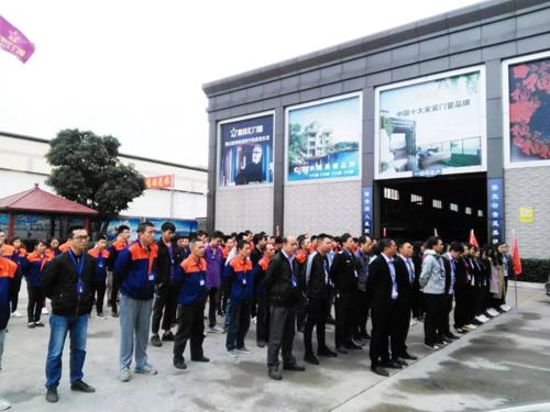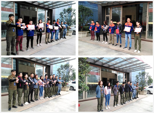 2018年11月19日早上7点55分,全体职员集中在公司大厅门口,举行周一早会及月度考核奖捐执行大会。