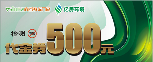 亿房环境公司与尚哲系统门窗共同发行的免费甲醛检测代金券样式如下: