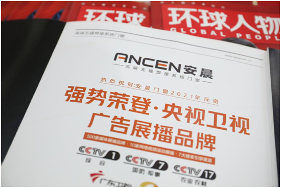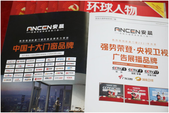 多年的务实经营为安晨扶摇直上打下坚实的基础;多年的默默付出为安晨今朝突出重围提供了强劲动力;多年的锐意进取为安晨结出甘甜的果实埋下了充足肥料!2021年,安晨高端无缝门窗拿下“中国十大品牌”、登上央视和地方卫视、登上《环球人物》权威期刊,充分展现了安晨厉兵秣马、厚积薄发的累累硕果!