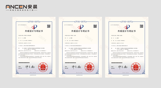安晨高端无缝焊接系统门窗以“为用户创造良好的产品体验服务”为使命,在无缝焊接门窗的技术上不断地精益求精的同时,还以绝佳的外观设计先后获得了《铝型材(副梁)外观设计专利》、《铝型材(主梁)外观设计专利》、《铝型材(装饰边梁)外观设计专利》三大专利,既保证了安全性、隔音性和气密性,还进一步地增加了装饰性,达到了既是实用性强又有美感的效果。为用户带来更好的舒适和体验。
