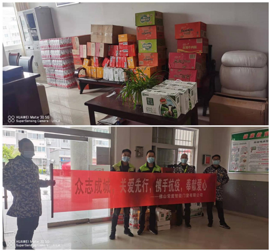 在全市防控“新冠”疫情关键时刻,佛山常度智能门窗有限公司主动承担社会责任,积极参与抗疫行动,自发组织“众志成城,关爱先行,携手抗疫,奉献爱心”的送物质活动。