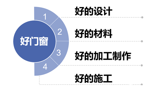 门窗产品不同于其它买回去就能用的产品,在经过设计、选材、加工制作,还需要施工安装的环节,最终作为完成品交付到客户手里。因此,一樘门窗需要有好的设计、好的材料、好的加工制作,好的施工,才能称之为品质好的门窗。