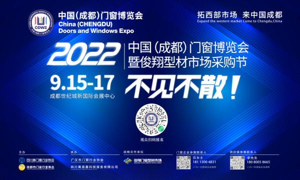 2022中国(成都)门窗博览会将于9月15日—17日举办,展会将立足西部、面向全国、走向世界,助力门窗行业高质量发展。