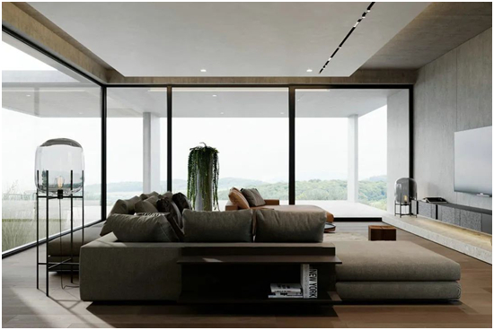 大玻璃落地窗是现代简约风客厅的首选,宽大的采光区能够让光线最大化的进入,室内的光线更加明亮、采光更加充足,能够凸显室内宽敞,给人以开阔通透之感,将窗外景致收入眼底,满足了我们内心深处对自然生活本真的追求。