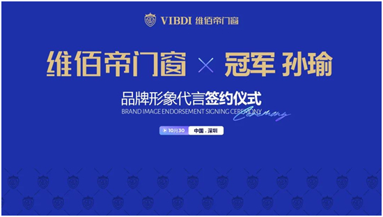 10月30日,维佰帝门窗董事长熊伟与世界冠军.孙瑜进行冠军品牌代言人、品牌推广战略签约仪式在深圳隆重举行,此次重磅合作,不仅仅是世界冠军孙瑜对维佰帝门窗品牌高度认可及品质的极度信任,更是品牌实力的见证。