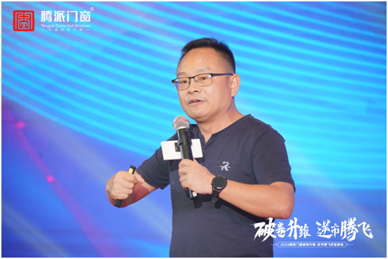 聚力成势,奋楫升维,创赢未来,勇于突破。腾派门窗创始人杨建围绕会议主题“破卷升维·逆市腾飞”发表讲话。杨总强调:“基地升级、产品升级、定位升级、营销升级和渠道升级”是腾派门窗面对内卷市场所指定的战略方向,2024年将深度推进五大升级,深耕下沉市场、旧改市场、毛坯房市场。腾派门窗将聚焦终端,将增长战略落到实处,加速布局空白网点,利用新媒体工具赋能,携手明星代言引爆流量,强化人才队伍的建设。