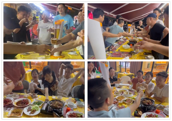 日薄西山,玩耍过后,巴特鲁营销团队大家庭更是欢聚一堂,在长桌旁举杯畅饮,尽情享受特色美食,加深了团队成员之间的情谊。