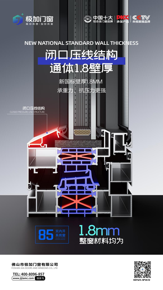 极加门窗·极光系列,不仅在设计上融入极光元素,更在功能上追求极致。新国标壁厚设计,搭配超强承重与抗风压强性能,让每一扇门窗都成为安全的守护者。专利首创隔热条与平开门不下坐设计,不仅提升了门窗的稳固性,更让居住者在使用中感受到极加门窗的匠心与用心。
