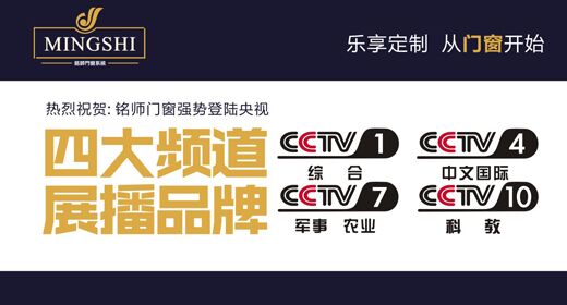 要想有效升级品牌形象,选择权威性媒体宣传是关键。中央电视台作为国家电视台,它是中国媒体的权威代表,是中国内陆收录率最高的电视台之一,同时更是与国外观众朋友沟通的重要桥梁。其一直以来都是众多企业品牌进行品牌展播的黄金渠道,但更多的是被其高昂的展播费用“拒之门外”。铭师门窗深谙要打破铭师现今的发展壁垒,就必须通过投放央视,进行品牌展播。因此,2017年,铭师品牌荣耀升级,斥巨资强势登陆央视,在全国乃至世界观众面前锋芒毕露,为实现品牌跨越式发展迈出了重要一步。