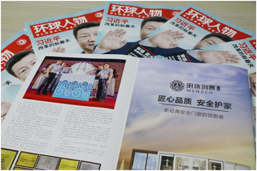 《环球人物》是国内发行量最大、最具权威性和影响力的综合时政类期刊,自创刊以来便秉持“以人物记录时代”的宗旨,以国内外政治、经济、社会、文化领域高端人物为报道对象,打造具有全球视野的人物类期刊。值得一提的是,《环球人物》的市场覆盖率极高,已连续8年被评为中国邮政畅销报刊,在各大星级酒店、各大城市的高档写字楼、各大机场、高铁等地都能看到《环球人物》的身影。明珠创展门窗品牌能在这本独具魅力的综合时政期刊上刊登专题报道,实属企业之荣光。这不仅意味着明珠创展门窗的综合实力以及发展现状备受权威杂志肯定,还意味着明珠创展门窗的未来倍受社会期待!
