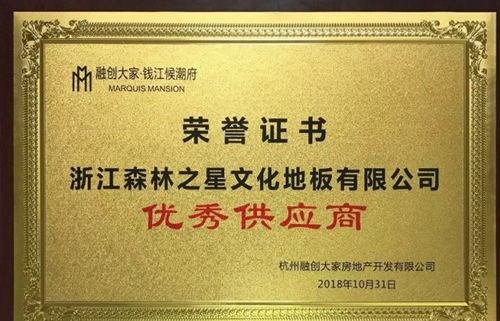 著名木地板品牌森林之星获得融创中国“优秀供应商”的殊荣