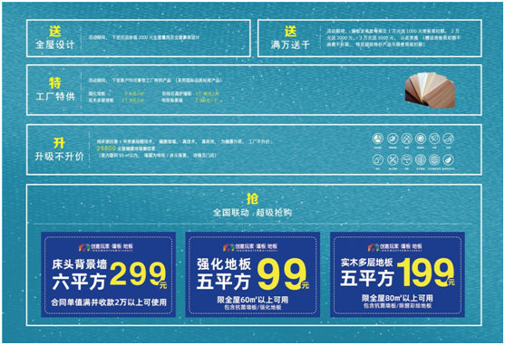 在本次“健康全屋地墙节”中,创意玩家向广大消费者表达出满满的诚意,不仅有超实惠的工厂直出价格,创意玩家还准备了多重福利。