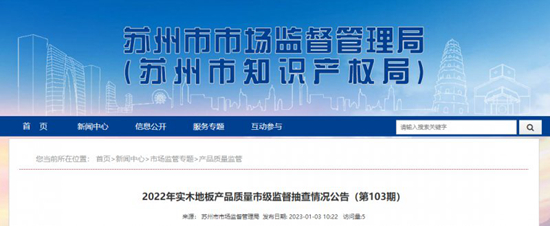 2023年1月3日,江苏省苏州市市场监督管理局网站发布2022年实木地板产品质量市级监督抽查情况公告(第103期)。