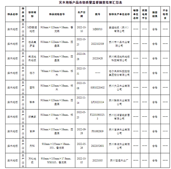合格率100%!苏州发布2022年实木地板产品质量抽查公告