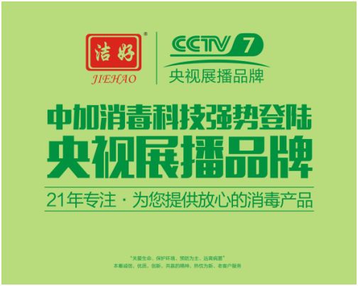 这次,中加首次登陆央视7频道,诠释中加消毒科技品牌,将大大提升中加得品牌知名度和影响力。只有品牌强大,才值得信赖;技术过硬,品质才更加完美。中加消毒科技,做放心产品,为我们的公共环境卫生保驾护航。
