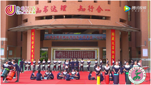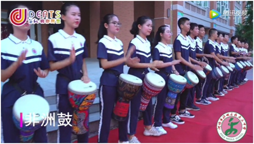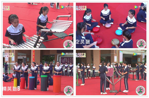 随着手腕的轻轻挥动,跳动的音符随之荡漾开来,优美动听的旋律响彻校园,深厚灵透的曲调萦绕操场上空。由于同学们对音乐的挚爱,无可挑剔的默契配合,一首动人的敲击乐——《茉莉花》缓缓地从他们指尖敲击出来。而令人遐想的音效——清幽、空灵、真实可感,配合金属的敲击声,则又细腻刚硬、绵延致远,这一串串的美妙音符皆从笛驰敲击乐器中完美地展现出来。