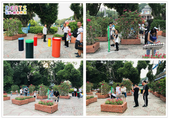 透过现场,我们可以看到笛驰敲击乐所精心打造的乐器分布在世界之窗文化主题公园的休息角,时不时有游客驻足观看或直接上前试奏,更有甚者当场即兴演奏出一段动听的旋律,赢得了其他游客的阵阵呼唤与掌声。在这里,演奏者不分年龄大小、不分职业身份,他们听从心中的想法演奏出属于自由、属于自我的音乐,达到灵感的释放,收获纯粹的快乐!