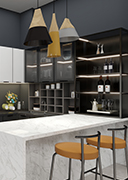 目前,产品涵盖了整体橱柜、铝合金橱柜、不锈钢橱柜、配套酒柜、餐边柜、书柜、装饰柜、门厅柜、榻榻米和整体衣柜、铝木玻璃衣柜等十几个定制品类。同时,还提供配套电器和成品家居供应链,完全满足了居家七大定制空间的个性需求。
