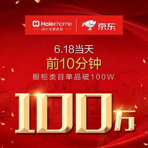 618早已超越电商促销,成为新零售时代的一场狂欢派对。6.18当天前10分钟,海尔全屋家居便取得京东橱柜类目单品破100万的战绩,并一路刷新交易数据,创造井喷式增长效应。