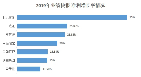 衡量一个行业的繁荣程度,从各家上市企业的业绩数据便能窥探一二。截止发稿前,7家公司已经披露2019业绩快报,以净利增长上限来计,我乐家居、欧派、皮阿诺、尚品宅配、金牌厨柜、顶固集创、索菲亚7家净利总额为亿元,参照2018年度的平均净利率来计算,7家公司2019年盈利总额突破亿元。