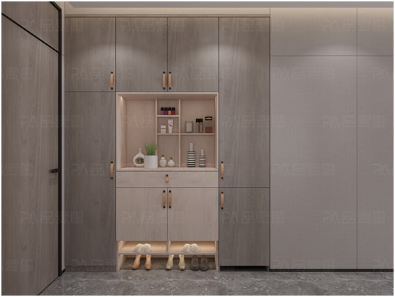 品爱全屋定制“秋日晴风”系列造型简练、深浅搭配,点缀皮质拉手,在自然简练之间,遇上品质生活。