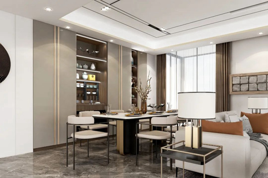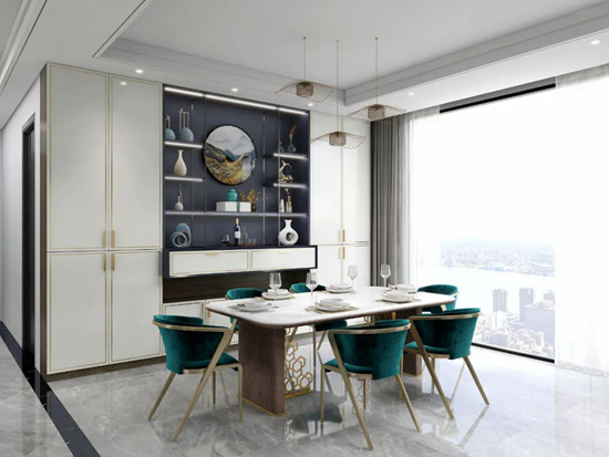 H8-5的餐厅,意式轻奢元素与中式风格的完美结合,不仅体现了主人不凡的品位,还让团聚的时刻,自带光芒。