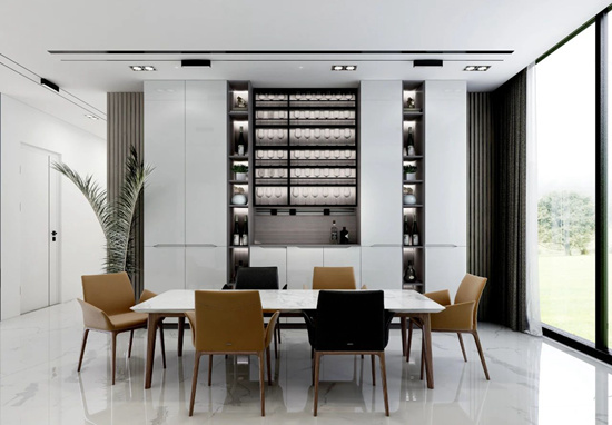 定制餐边柜内置智能餐柜精灵,具备自动感应恒温除湿、超声波驱虫、智能抑菌、APP智能监控等功能,充分呵护每一件餐具的洁净。在这样的餐厅里共度元宵佳节,轻吟诗句,甚是应景。