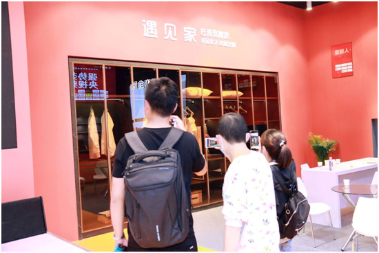 遇见家独特的展位设计吸引了众多参展者驻足停留,展位极其人气火爆。尽管本次展会客流量大,但是遇见家团队仍将工作有序进行,不会让莅临的参展者失望而归。在参展之前,遇见家大力开展员工培训,以专业的知识、热情的态度服务好每一位来宾。与此同时,遇见家准备不同场景的全屋定制家具方案,以满足不同人群的个性化需求。