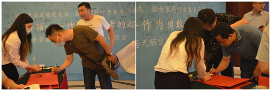 本场会议最大的悬念便是加盟政策,更是众多经销商最为关心的问题。在演讲过后,营销总经理习士文先生向大家公布鲁丽家居为经销商提供的多项支持政策和优惠补贴,会议现场加盟更是可以获得现场追加优惠。如此大的优惠力度让现场参会人员十分激动,纷纷把签约处围住,争先恐后的确定区域、转账、签订代理协议。在短短的十几分钟里,就有30余位代理商加入鲁丽这个大家庭。有经销商表示确定了合作之后心里的一块大石头也就落了地,期待之后可以和鲁丽一起有更好的发展。