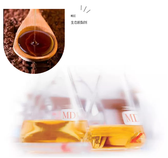 MDI是二苯基甲烷二异氰酸酯、含有一定比例纯MDI与多苯基多亚甲基多异氰酸酯的混合物以及纯MDI与聚合MDI的改性物的总称。MDI胶,即MDI生态胶粘剂,学名异氰酸酯,其自身具有的多种特性可以在板材制作过程中发挥重要作用。