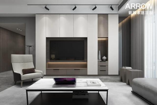 大面积的浅灰色门板与背景色和谐统一,让待客之厅清爽不压抑。全封闭式设计展现强大收纳能力,既满足常用视听设备和遥控器物品摆放,也能满足大件存储需求,生活有的放矢。