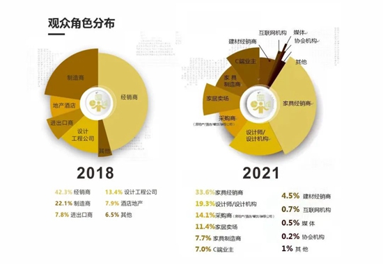 这一点,从近年来名家具展的观众结构的变化可见一斑。五年前,至少有60%以上的专业观众是家具经销商,而今年3月举行的第45届名家具展,家具经销商仅占比33.6%,而设计师/设计机构以及房地产/酒店/餐饮/装修公司等采购商占比达到了33.4%,此外建材经销商、定制服务商、互联网机构也占了相当一部分比例。