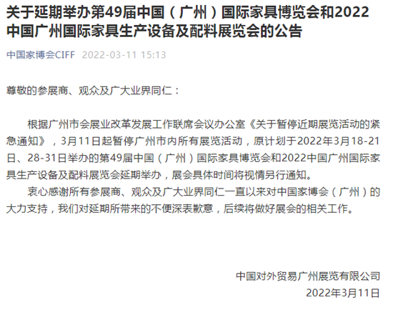 受疫情影响,短短一个星期的时间内,在广州、上海举办的多个家居建材展会宣布延期了,一时间,展会延期通知刷屏了!