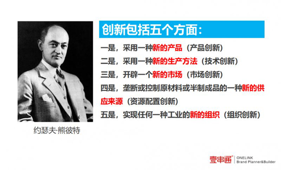 可以说,创新的方法论离不开以上的五种路径,可以将他这一段话归纳为五个创新,依次对应产品创新、技术创新、市场创新、资源配置创新、组织创新。