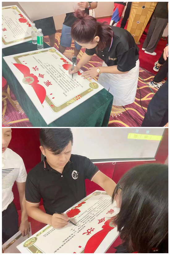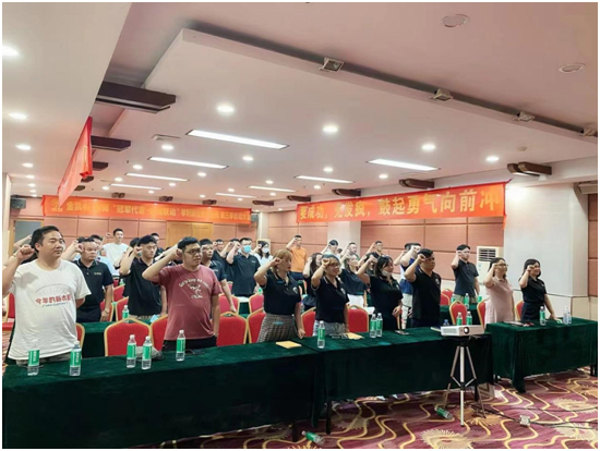 在激昂的战鼓声中,各个城市团队高喊自己的队名、口号,签订军令状,并表达了坚决完成此次任务的决心。激情表态、铿锵誓言,更是把启动会气氛推至高潮,“冠军代言•全城联动”零利润征集样板房第三季启动大会在热烈的掌声与欢呼声中圆满落幕。