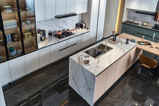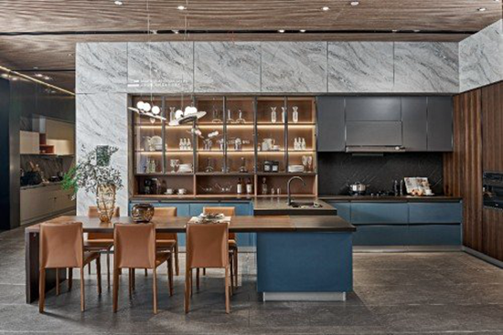 在太子家居的官网上,你就能看到不同风格的真实落地案例。在现代简约风格中,橱柜不仅满足储物功能,而且利用材质与颜色的拼接融合形成独具一格的调性。同时,在设计时,设计师也会考虑结合厨房动线,为住户打造既明亮舒适又符合生活习惯的餐厨空间。