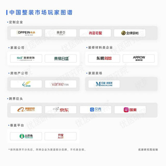 5、以阿里巴巴、京东、贝壳为代表的跨界巨头,此类企业借助自身的互联网、物流等优势,同时与多家品牌合作整合行业资源进入整装市场;