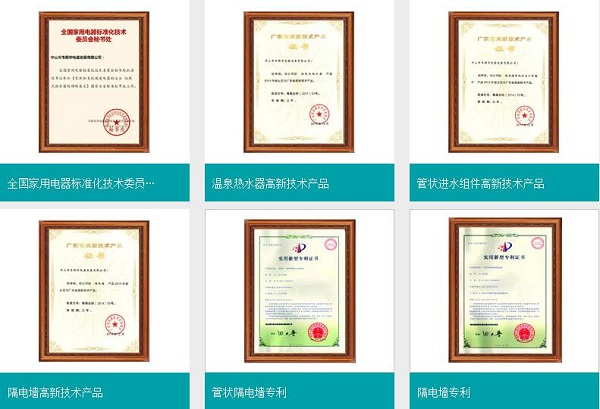 2015年公司凭借与美的、万和、万家乐等国内知名品牌强强合作,又投入巨资引进了一批经念丰富的热水器专业技术人才和相应配套完整的德国进口机械和电子检测设备投入热水器、厨卫电器和净水行业,严格的生产品质管理制度,以保证产品品质及性能,先后开发了多种快热电热水器,速热电热水器、家用温泉机、净水器等系列产品,该产品具有“安全性好,热效率高,洗浴保健等各项优点,特别是温泉电热水器诞生引发了热水器的再一次性的革命(产品核心专利技术专利号:ZL121134678),为中国消费者热水沐浴带来了国际高品质的奢侈享受,开创了健康沐浴崭新新时代。