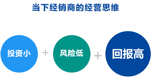 二、“经销商思维”做市场,实质上经销商思维就是投资小、风险低、回报高。以前的市场环境都是比较容易赚到钱,而当下市场是投入很多的精力和资金,得到的却是很不称心的回报,简单的说就是花更多的钱赚更少的钱。有时想尽量少折腾,减少支出平稳过渡,保持一种防守的态势,可结果很快呈现出来的问题是不但销量下滑了、团队核心流失、当地市场知名度都没了,就连自己也变得一点信心都没有,甚至想改行的念头都有。