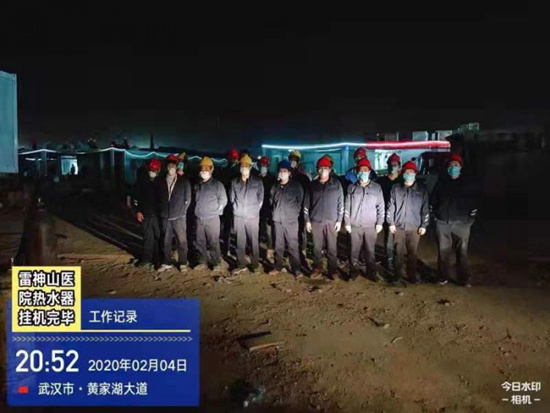 海尔速度 雷神山医院热水器2月4日安装完毕