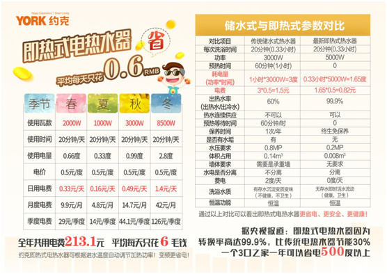 以往许多消费者有个误区,认为功率越大的电器耗电越多。而实际上是,即热式电热水器因不用提前预热,所以没有预热时的热能量散失,用时打开、不用时就关闭,用多少水就放多少水,比传统电热水器节能30%。一个3口之家一年大概可省电500度以上(来源于央视报道)。