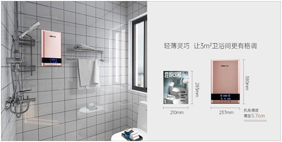 热水器作为卫浴间的三大件之一(洗手台、马桶、热水器),在有限的面积内,如再勉强选用体积庞大的传统电热水器,则会浪费很多空间。它“笨重”、“呆板”的形象非但与现代家装风格难以融合,而且当它安置于人的头顶上方时,还会由于空间局促带来拥挤感和压迫感。