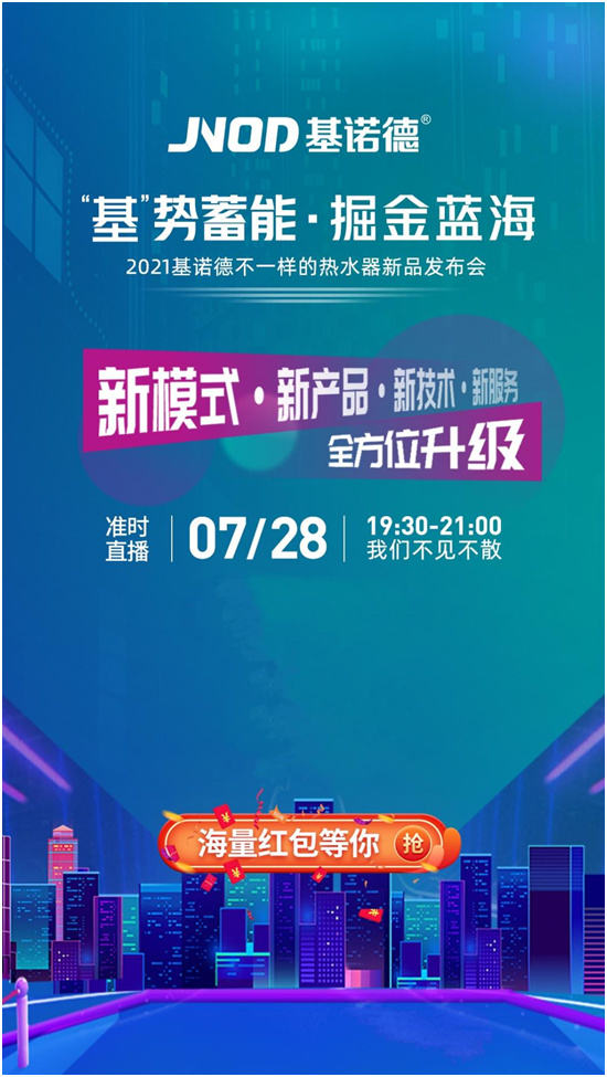 7月28日19:00-21:30,基诺德热水器新品发布会直播活动隆重上线!本次直播发布会以“‘基’势蓄能 掘金蓝海暨2021基诺德不一样的热水器新品”为主题。本次新品发布会直播活动受到了热水器行业众多代理商、经销商及全国各地网友的欢迎,一起体验新品的神奇魅力,共同见证了这场“视觉盛宴”!