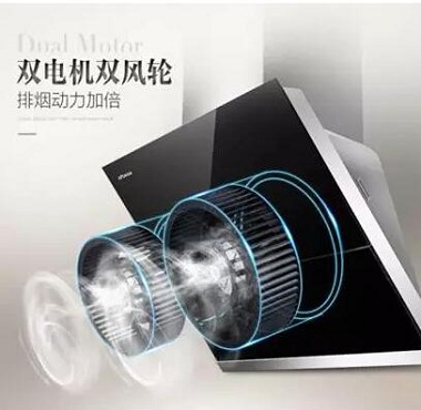 智尚系列配备的两个强力高转速电机,当然这个也没什么,配件而已嘛!这么想就错了,实际上普通烟机的双电机方案往往会产生互相扰流,也就是说两个电机还不如一个大电机效果好,原因就在于物理上两个反向气流会产生负压区干扰,在烟道收窄情况下,排烟效果反而不够。