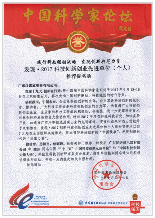 汉诺威电器祝第十四届中国科学家论坛圆满成功!